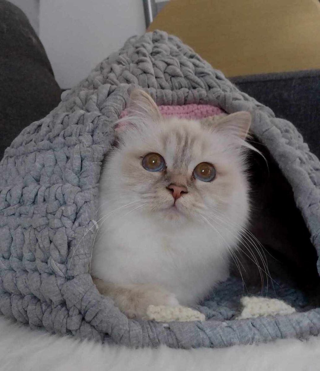 avec des yeux bleu foncé, un joli gantage presque parfait et