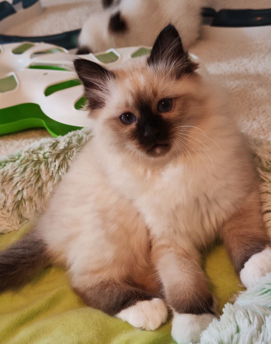 blue point, collier vert, un mois |