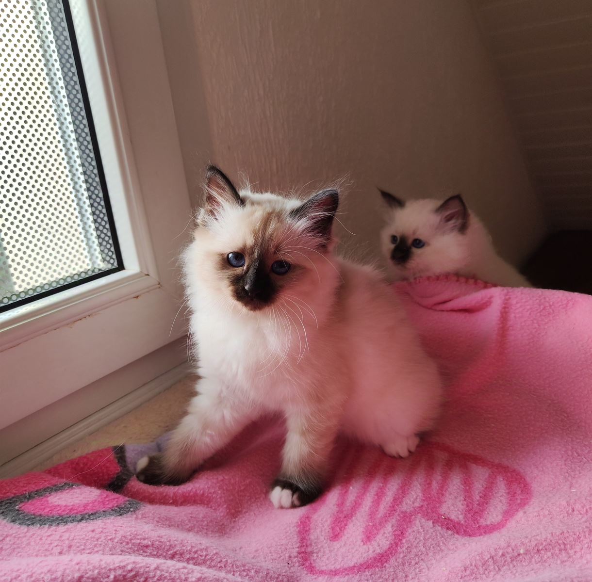 chocolat point, collier rose, un mois |